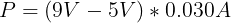 Where P is power in watts, Vin is the input voltage, Vout is the regulated output voltage, and I is the load current in amperes.